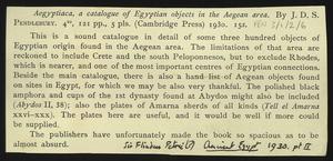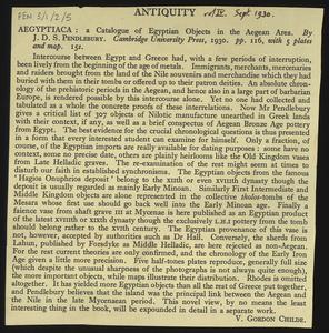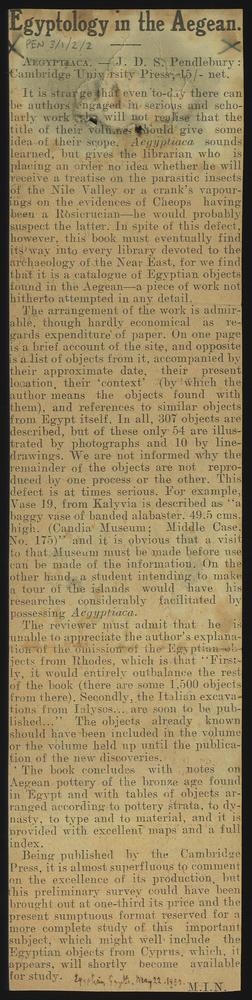 Annotated, mainly, in John Pendlebury’s handwriting. Includes loose sheets inserted into the volume containing chronologies. [These annotations relate to changes to be made for the 1935 reprint, from the 1933 original].