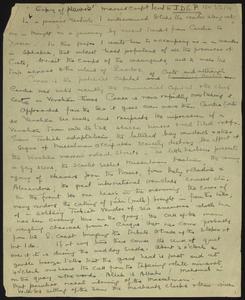 Copy of an article by [Harriet Boyd Hawes] about travelling around Crete. The first 4 pages are in Hilda Pendlebury’s handwriting, and the rest are in an unidentified hand.