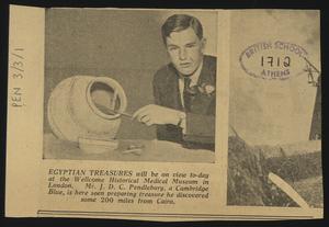Announcing the exhibition of ‘Egyptian Treasures’ at the Wellcome Historical Medical Museum, London [hosting the Egypt Exploration Society Exhibition].