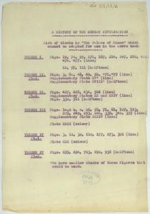 Comprises a list of illustrations in ‘The Palace of Minos’ by Arthur Evans, volumes I-IV.