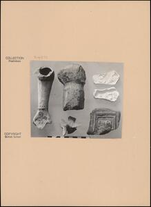[PEN/4/3/13/10/16], Two photographs terracottas etc from Donadhes, Kolonna and Kerasa, and iron objects from the Geometric tholos on the Papoura, mounted on cardboard, Undated