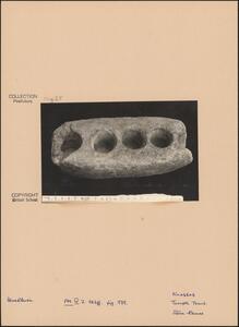 [PEN/4/3/13/3/9], Photograph of 2 small stone pieces, one carved, from Knossos, mounted onto a sheet of paper, Undated