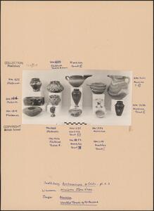 Two photographs terracottas etc from Donadhes, Kolonna and Kerasa, and iron objects from the Geometric tholos on the Papoura, mounted on cardboard