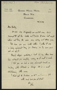 Sent from Garden House Hotel, Cambridge.