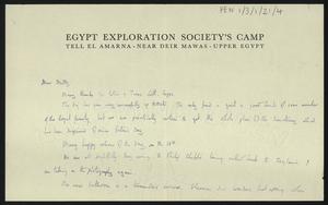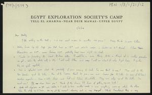 Sent from “Egypt Exploration Society’s Camp, Tell el Amarna, Near Deir Mawas, Upper Egypt” [Amarna].