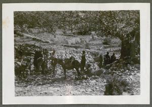 Photograph of group under the shade of a tree in Peponas [Mpemponas], Crete