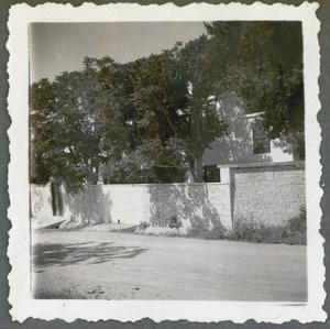 [PEN/7/2/6/434], Photograph of the wall and front (partially visible through trees) of “The New Taverna” at British School at Knossos, seen from across the road, Crete, Apr-Jul 1935