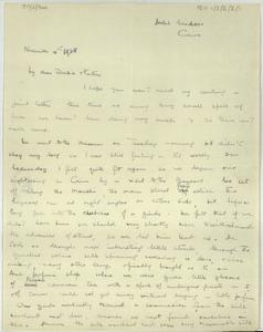 Sent “c/o Dr H Frankfort, Egypt Exploration Society, Hagg Kandil nr Der Mowas, Upper Egypt” [Amarna].