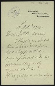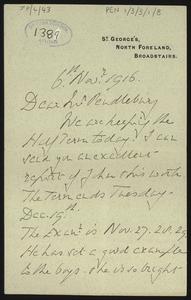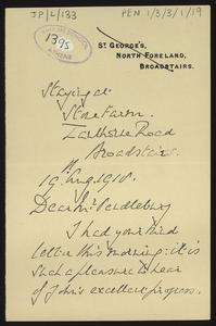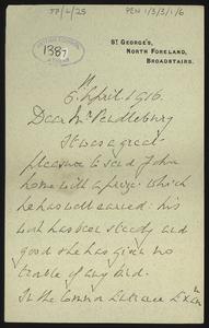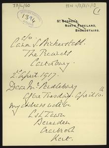 Sent “c/o Canon Bickersteth, Canterbury”.