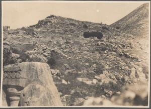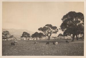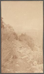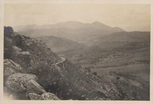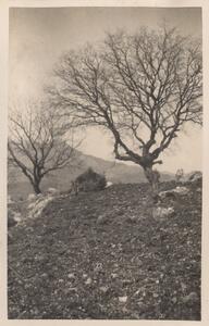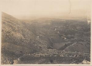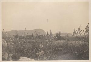 Depicts a view of the Greek landscape in the Peloponnese. No caption. Enlarged version of LAM/3/1/2/5.
