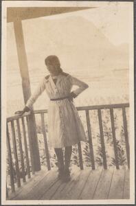 Depicts a young woman possibly Helene on a veranda near Mycenae. No caption.