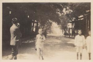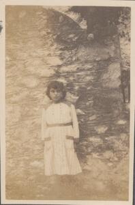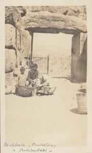 Depicts three children (Pandeloula, Pandelina and Pandeloudaki) at the ruins. Written at the bottom of the photograph with pencil is written “Pandeloula, Pandelina and Pandeloudaki”. At the bottom right corner of this page, is written “CB”.