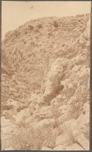 Depicts the landscape near Mycenae. Handwritten caption: “The Chavos gorge.”, now better known as Chavos Ravine.