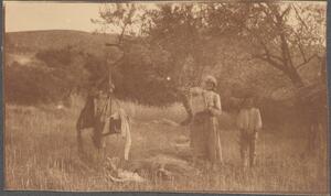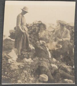 Depicts Winifred Lamb, J. Webb, C. T. Seltman and F.B. Welch at Hymettus. No caption. A similar photograph is found at LAM/3/1/5/8, hence the dating and idenificaton of the people