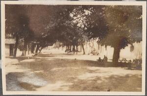 Depicts buildings in the village with the trees. Hand written caption: Maaika: The platform in the plane tree”. Enlarged version of LAM/3/1/2/48.