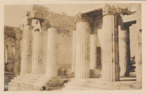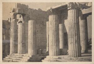 Depicts the ruins of the propylaea at the acropolis. No caption. At the top left corner of this page is written “ATHENS”.