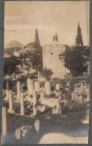 Depicts a view of the ruins at the Roman Forum, Athens. Handwritten caption: “The Tower of the Winds”. Enlarged version of LAM/3/1/3/113.