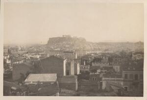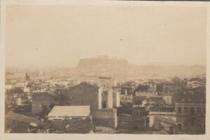 Depicts a view of Athens. Handwritten caption: “The Acropolis from Lycabettos”. Enlarged version of LAM/3/1/3/115.