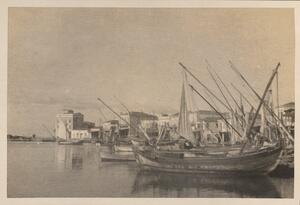 Depicts a view of the harbour of Aegina. Handwritten caption: “Aegina – The harbour”. Enlarged version of LAM/3/1/1/34.