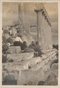 Depicts the B.S.A. group (Lilian Chandler, the Hundii, the Ashmoles and Mary Herford (later known as Braunholtz)) at the temple of Aphaia at Aegina. Handwritten caption: “Aegina – the Temple”. Enlarged version of LAM/3/1/1/40.