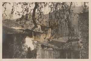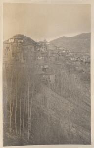 Depicts a view of the Greek landscape in the Peloponnese. Handwritten caption: “Dhimitsana”. Enlarged version of LAM/3/1/2/53.