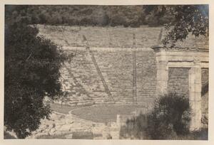 Depicts a view of ruins of the theatre. Handwritten caption: “Theatre – Epidauros”. Enlarged version of LAM/3/1/3/47.