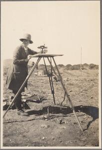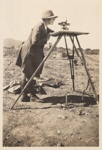 Depicts her using a Total Station Transit. No caption, but Helen Waterhouse wrote WL under the photograph.