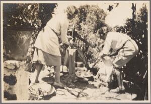 Depicts two women, probably part of the group, sitting at a tree. No caption.
