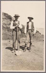 Depicts two workmen, posing. Probably near Thermi. No caption.