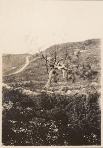 Depicts the road they took to go to a nearby town, at the background. Probably near Thermi, Lesvos. No caption.