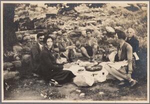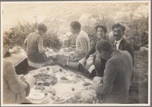Depicts the group having a picnic, probably near Thermi. No caption.