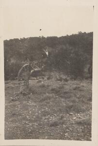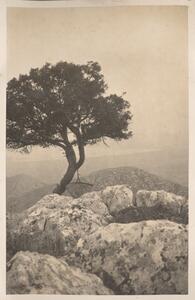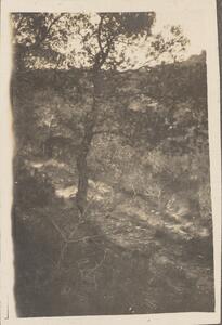 Depicts a view of the Attiki landscape. Handwritten caption “Goat in Tree”.