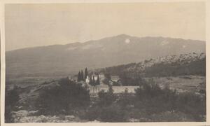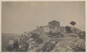 Depicts a view from the mountain and the building at the summit. Handwritten caption: "St Elias."
