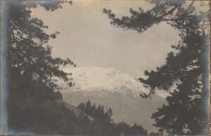 Depicts a view of a mountain. Handwritten captions: "Chetmou(?)" and "28 III 23 AIKW".