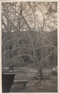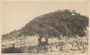 Depicts a tree with benches around near the monastery of Kaisariani. Handwritten caption “Kaisariane”. Enlarged version of LAM/3/1/10/54.