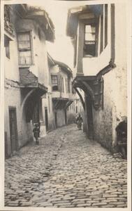 Depicts a cobbled street. Handwritten caption “Salonika”. Enlarged version of LAM/3/1/10/44.