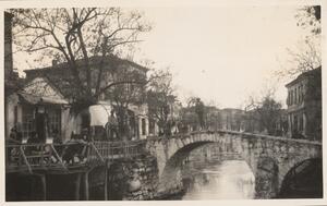 Depicts a bridge in the village of Kalloni, at Lesvos. Handwritten caption “Kallone. Lesbos”. Enlarged version of LAM/3/1/10/48.