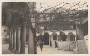 Depicts a monastery courtyard on Agiasos, Lesvos. Handwritten caption “Agaso Cloister”. Enlarged version of LAM/3/1/10/51.
