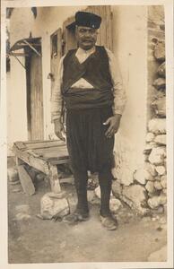 Depicts the man, standing outside his house, probably near Thermi (Lesbos). No caption.