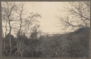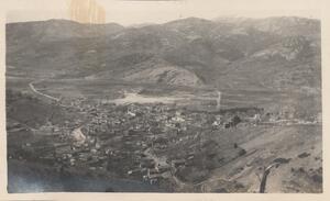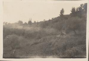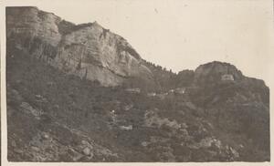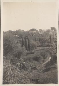 Depicts the buildings on the hillside in Arcadia. Under this image is written “WL”, but Winifred is not in this photograph.
