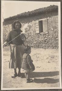 Depicts a local woman and a child, near Olympia. Handwritten caption: “Miraka. 2. III. 23”.
