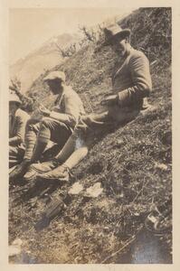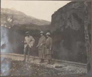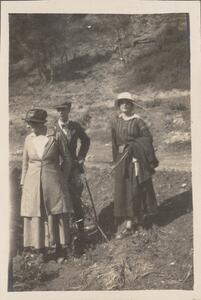 Depicts the people (one man two women), probably members of the B.S.A in Arcadia. Handwritten caption “En route” and what it seems “AMW”.