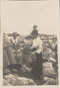 Depicts S.C (right), F.B. W (Welch)(centre) and H.D.H (Hazel D. Hansen) (left-partially out of image) from the ASCSA. Handwritten caption: "S.C. FBW. HDH."