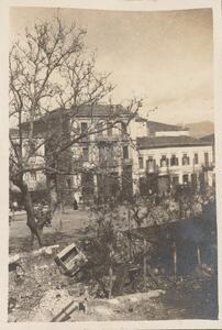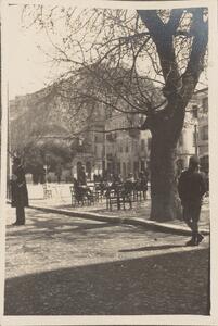 Depicts a view of the square at Nauplia. No caption for image itself. At the top right corner of the page is written “NAUPLIA”. At the bottom right corner is written “21. II 23-24. II / 12. III 23 – 17 III 23”