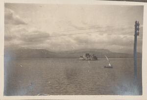 Depicts a view of the fort off the coast of Nafplio Harbour. No caption.