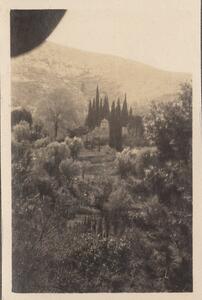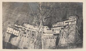 Depicts a view of possibly the monastery. No caption for the image itself. At the top right corner of the page is written “KAISARIANE”. At the bottom right corner of the pafe is written “Sunday 18. III. 23”. No caption at the photo.