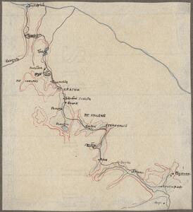 Depicts a walking trail starting at Diakofto through Mt Kyllene and ending at Mycenae. Various sites stopped at along the way include: Megaspileon, Diakophto, Kalavryta, Tsivlos (and the lake), Mt. Chelmos, Solos, Peristera, Sevista (Stenos?), Zarouchla, Mt. Krathis, Sevitsa (Stenos), Pheneos, Mt. Kyllene, Stymfalia, Alea, Dunka and Myceane are noted and reflected in the photos that follow (LAM/3/1/5/38 until LAM/3/1/5/95)