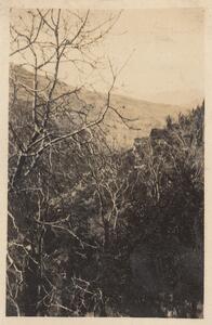 Depicts a view of the Greek landscape, near Olympia. Handwritten caption: “Above Anemochori”.