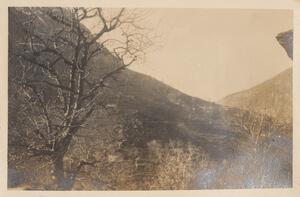 Depicts the mountains and lake in Arcadia. Handwritten caption: “Near Tsivlos”.