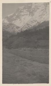 Depicts the mountains (Mt. Chelmos?) in Arcadia, with the river. At the bottom right corner of the page is written “AMW”.